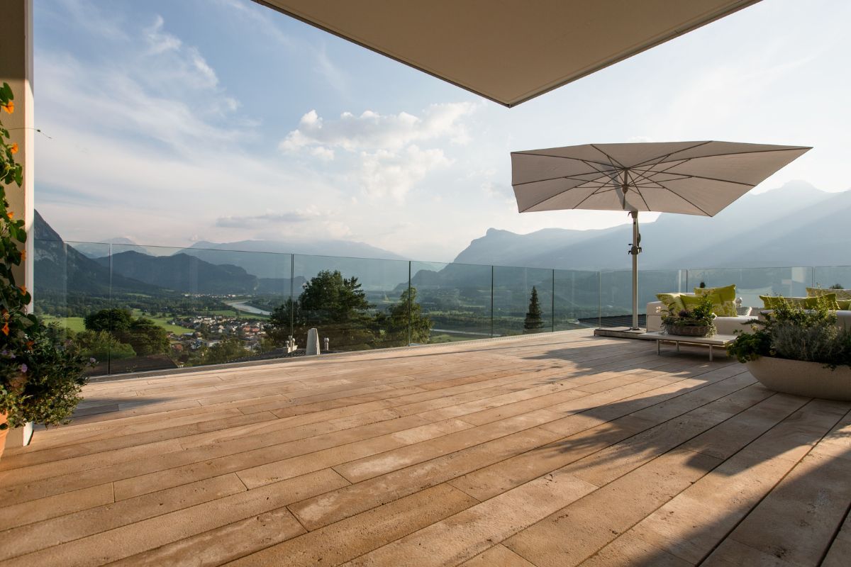 Für die grosszügige Terrassenfläche suchte die Bauherrschaft einen Boden mit Wärme und natürlicher Ausstrahlung. Ein Material, das zur Landschaft passt und die Atmosphäre eines Sommerortes trägt.