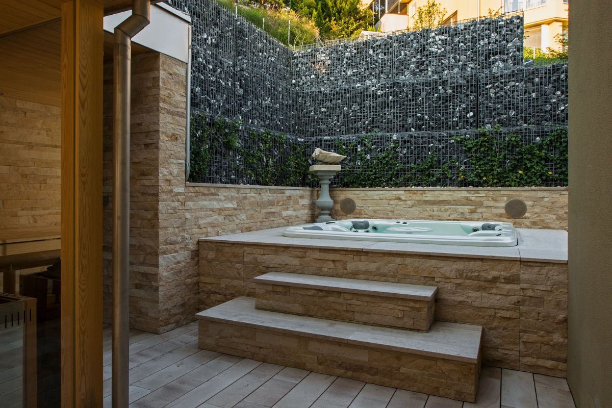 Im hinteren Teil der Terrasse befindet sich ein Whirlpoolbereich für entspannte Stunden. Auch hier haben wir den Kalkstein Seymour weitergeführt: